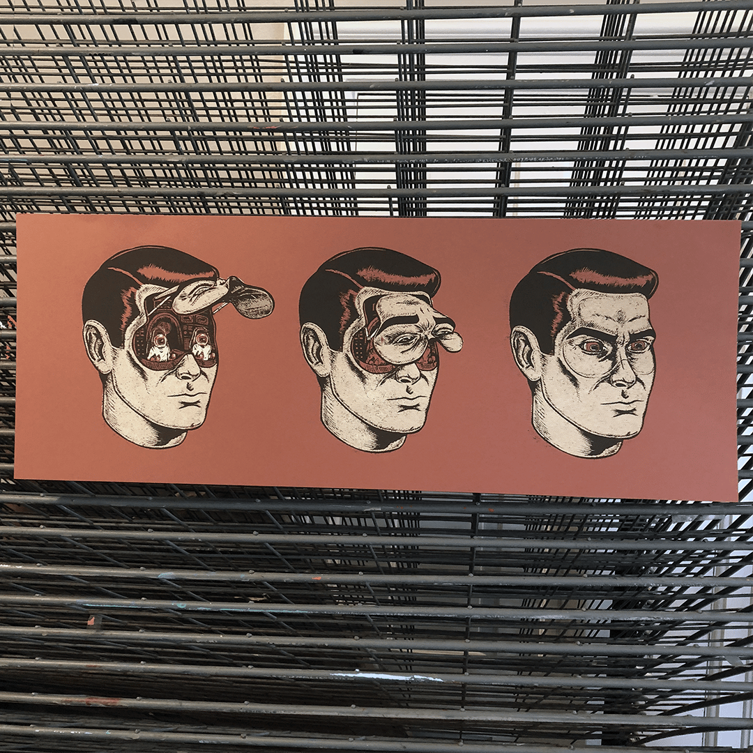 2 color screen prints, hand printed on 100 lb. French Paper. Sold individually (manilla yellow and red paper) or as a set-see dropdown box below for options. Framed option available, email joetallmanillustration for more information.